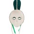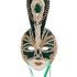 Роскошная карнавальная маска ручной работы изготовлена в ярких цветах, декорирована белыми и золотыми шнурами. Верх изделия украшен большим камнем овальной формы.