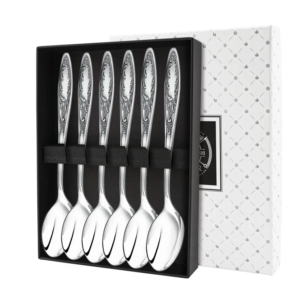 Набор чайной ложки "Пламя" посеребренный с чернением