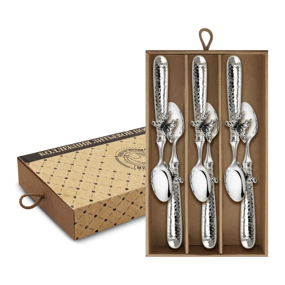 Набор чайных ложек "Бабочки" латунный посеребренный с чернением кованый