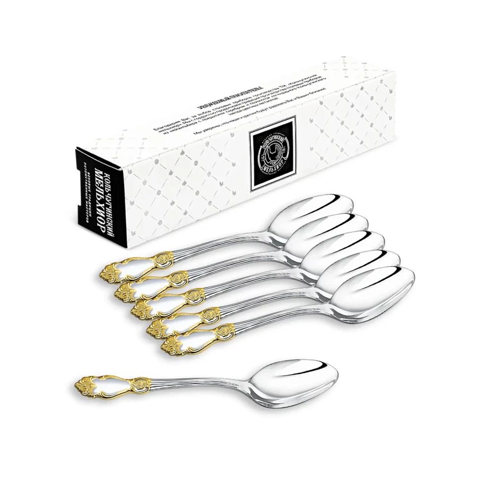 Набор чайных ложек "Серебряная роза" посеребренный с позолотой, комплект