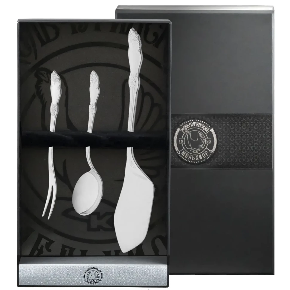 Набор чайный "Серебряная Роза": вилка для лимона, лопатка для пирожного, совок для сахара посеребренный