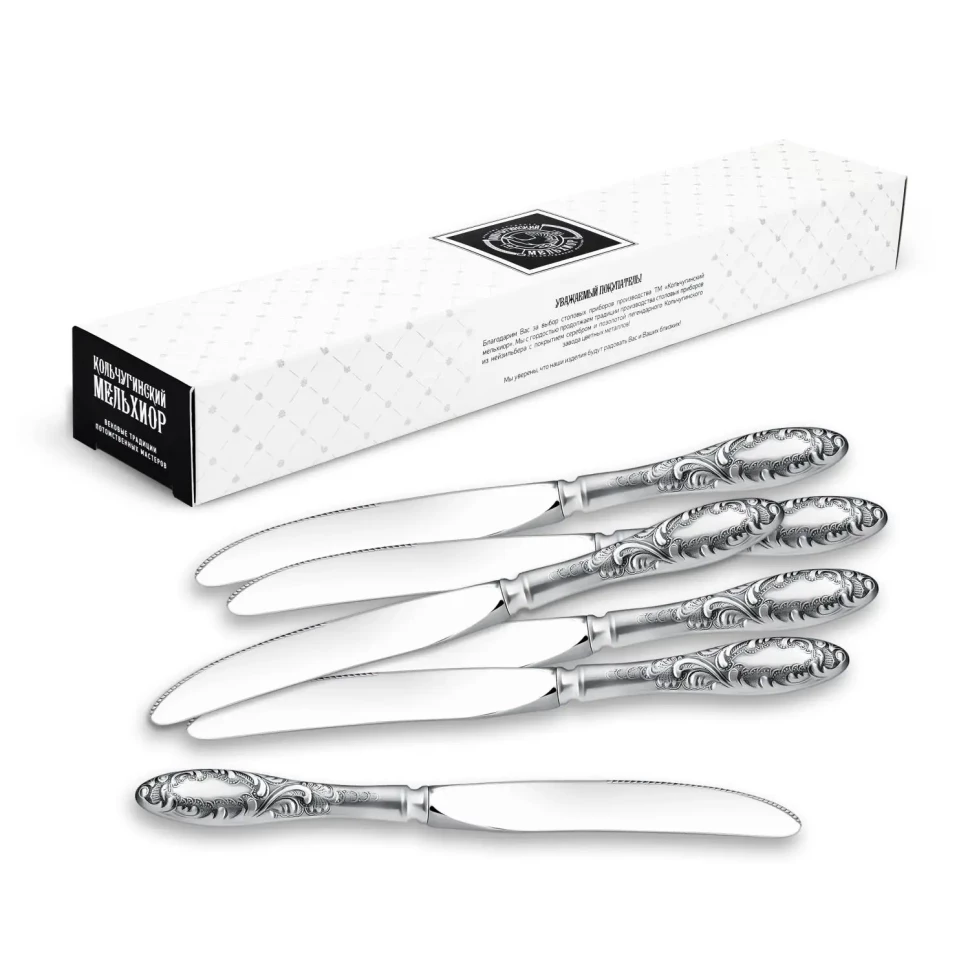 Набор десертных ножей "Морозко" посеребренный с чернением