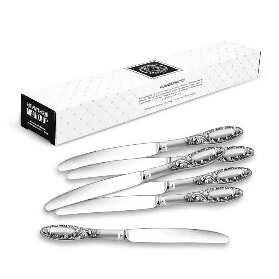 Набор десертных ножей "Пламя" посеребренный с чернением