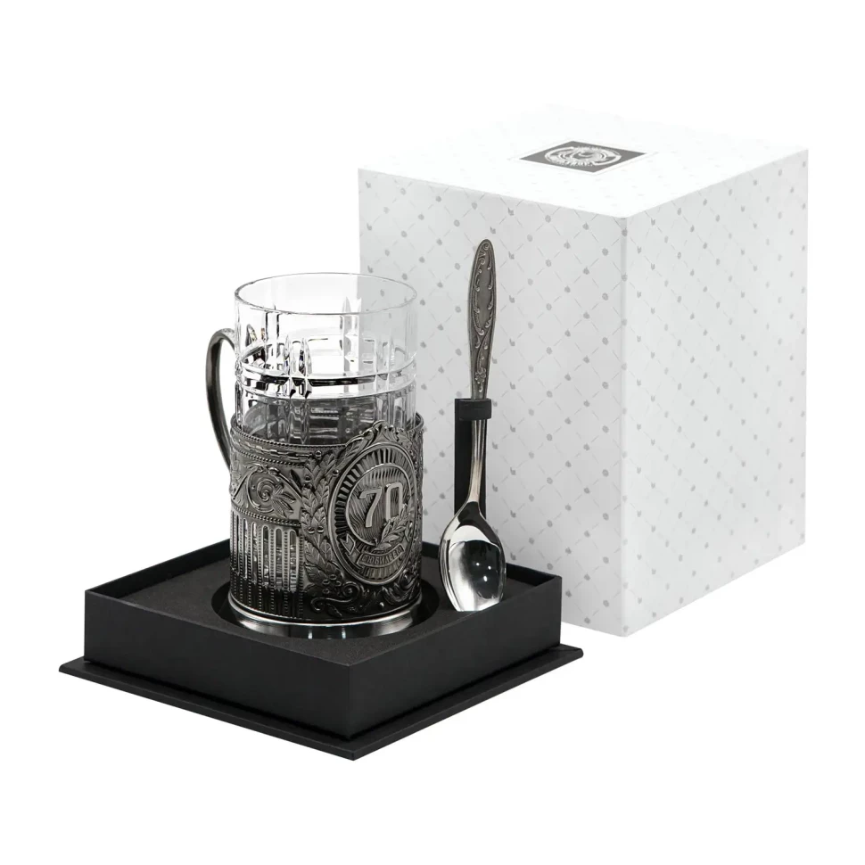 1. Подстаканник "70 лет" Советский никелированный с чернью арт. С7408/163 - 1шт. (средний вес 1 х 170 гр. = 170 гр.) Длина: 72 мм. Ширина: 72 мм. Высота: 95 мм. Диаметр: 72 мм.