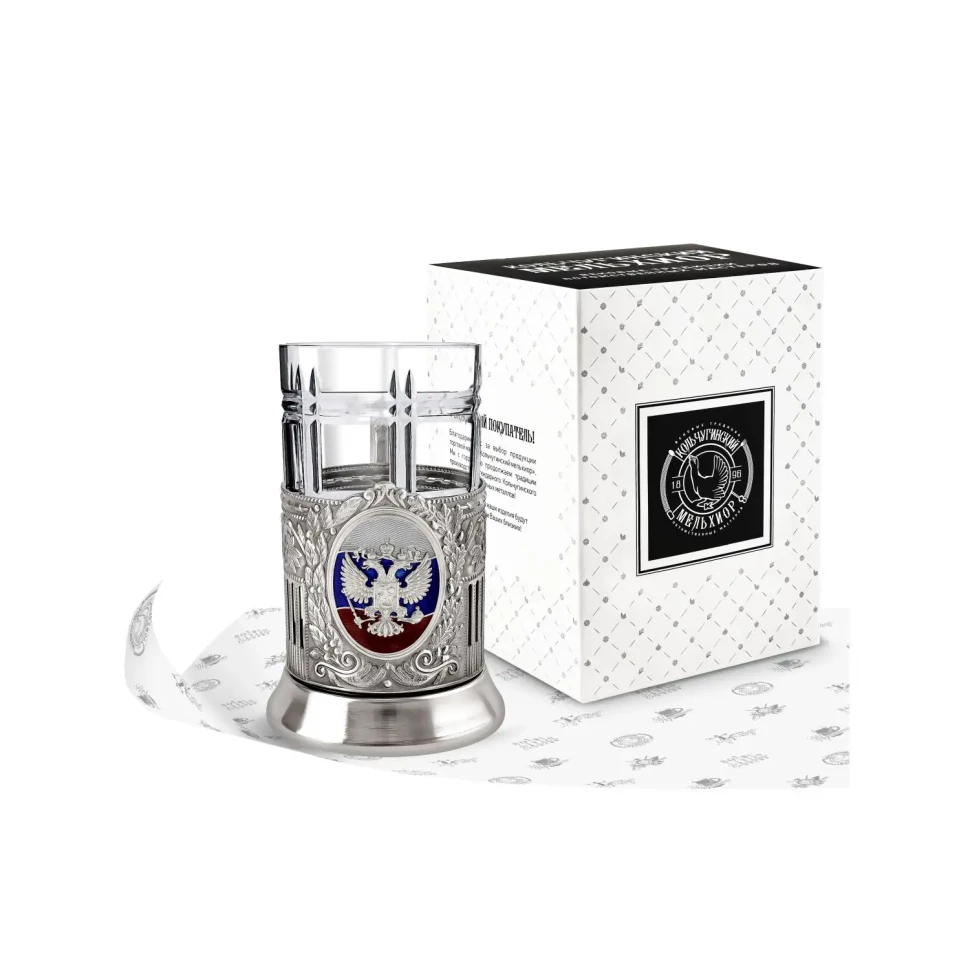 Набор для чая "Герб РФ (Советский) Триколор" никелированный с эмалью