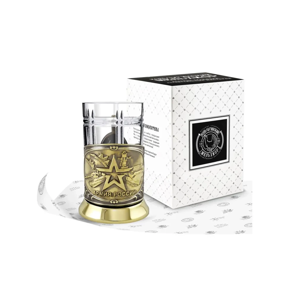 1. Подстаканник латунный "Армия" арт. С9408/69 - 1шт. (средний вес 1 х 170 гр. = 170 гр.) Длина: 72 мм. Ширина: 72 мм. Высота: 95 мм. Диаметр: 72 мм.