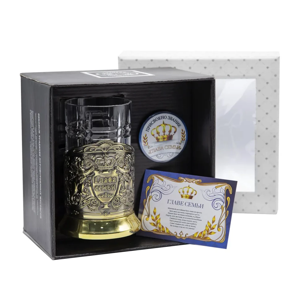 Набор для чая латунный "Глава семьи" с открыткой и значком "Глава семьи"