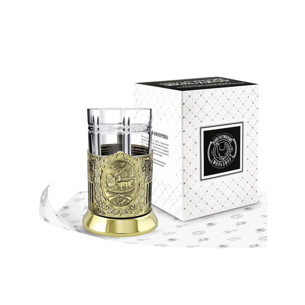 1. Подстаканник латунный 'Охотник (Советский)' арт. С9408/96 - 1шт. (средний вес 1 х 170 гр. = 170 гр.) Длина: 72 мм. Ширина: 72 мм. Высота: 95 мм. Диаметр: 72 мм.