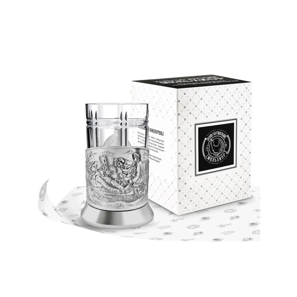 1. Подстаканник "Охотники" посеребренный арт. С56308 - 1шт. (средний вес 1 х 170 гр. = 170 гр.) Длина: 72 мм. Ширина: 72 мм. Высота: 95 мм. Диаметр: 72 мм.