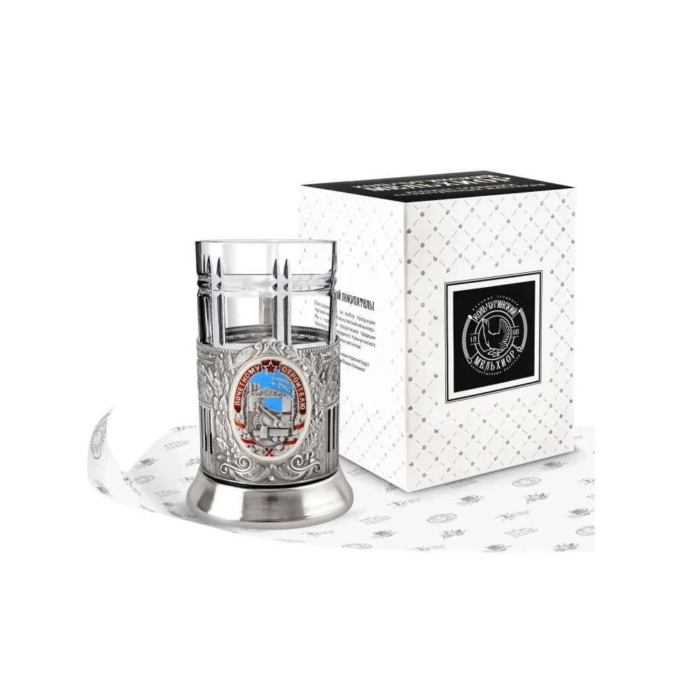 Набор для чая "Почетному Строителю" никелированный.с с эмалью