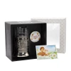 Набор для чая "Пётр и Феврония" никелированный с чернением с открыткой и значком "Семейный оберег"