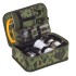 Набор дорожный из 11-ти предметов: фляжка 270 мл, 2 кружки 250 мл, 2 миски 400 мл, ложка, вилка, МФУ нож, разделочная доска, полотенце 30х30 см, фонарик. Изготовлен из коррозионностойкой стали, полимерных и текстильных материалов. Размер: L27 W10 H20 см. Упаковка-коробка.