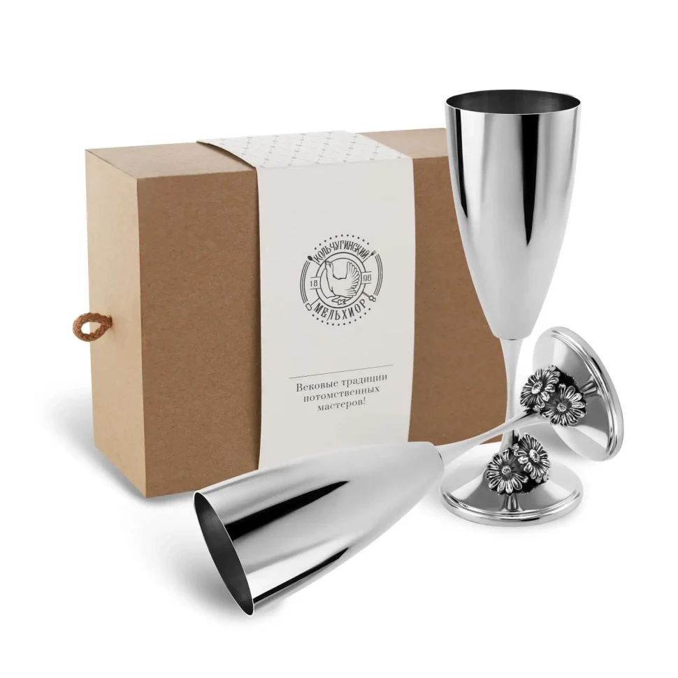 1. Фужер "Ромашка" медный посереб. арт. КМ676ФЖ02 - 2шт. (средний вес 2 х 145 гр. = 290 гр.) Длина: 55 мм. Ширина: 55 мм. Высота: 190 мм. Диаметр: 55 мм. Объём: 150 мл.