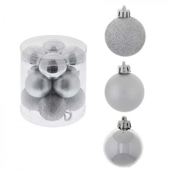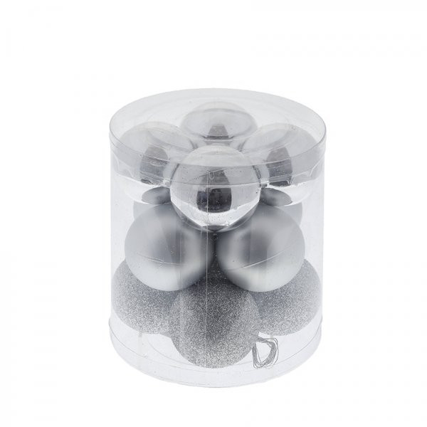 Набор из 12-ти елочных шаров, диаметром 4 см, выполнен в единой цветовой гамме. В составе набора - пластиковые шары разной фактуры - глянцевые, с глиттером и матовые. Прекрасно смотрятся в убранстве новогодней ели. Поставляются в прозрачной пластиковой упаковке.