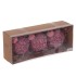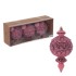 Набор из трех декоративных розовых новогодних украшений с изысканными узорами, упакованных в коричневую коробку с прозрачной пластиковой крышкой. Само изделие в виде шара, диаметром 7 см, сверху и снизу которого имеются фигурные элементы в виде вытянутых капелек. Окрашивание выполнено в технике искусственного состаривания. Красивые украшения придадут праздничный вид елке и интерьеру.