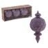 Набор из трех декоративных новогодних украшений в фиолетовом оттенке с изысканными узорами, выполненный в технике искусственного состаривания. Упакован в коричневую коробку с прозрачной пластиковой крышкой. Само изделие в виде шара, диаметром 7 см, сверху и снизу которого имеются фигурные элементы в виде вытянутых капелек. Эти прекрасные украшения добавят праздничный настрой вашей елке и интерьеру, создав атмосферу волшебства и уюта.