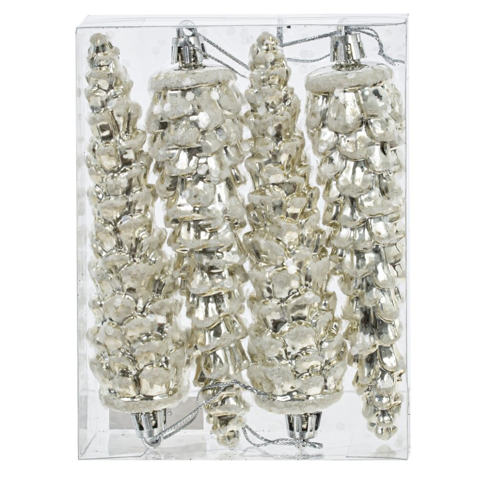 Набор из 4шт Украшение новогоднее "Шишка", L10,5 W3,5 H14 см
