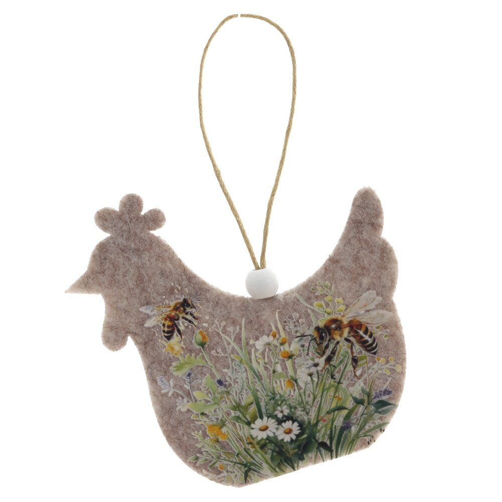 Набор из 6-ти декоративных подвесных украшений в форме курочек – нежный пасхальный декор для дома. Фигурки выполнены из мягкого фетра в природных оттенках: бежевом, белом и зелёном, с повторяющимся рисунком цветущего лугового поля, ромашек и пчёл. Каждое изделие снабжено тонким шнурком-подвесом с декоративной бусиной, что позволяет легко разместить украшения на пасхальном деревце, веточках, дверной ручке, люстре или в композиции с корзинкой и яйцами. Набор идеально подойдёт для создания уютной весенней атмосферы, оформления праздничного стола, детской комнаты или фотозоны. Такие подвески станут красивым дополнением к традиционным пасхальным украшениям и помогут создать тёплое, радостное настроение в доме.