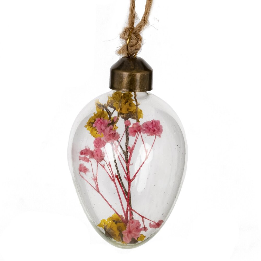 Набор из 6 декоративных подвесных изделий «Яйцо пасхальное» станет изысканным украшением вашего дома к светлому празднику Пасхи. Прозрачные стеклянные яйца наполнены сухоцветами нежных оттенков – фиолетового, оранжевого, розового и жёлтого, создавая ощущение весенней свежести и лёгкости. Металлическая декоративная «коронка» придаёт изделиям винтажный шарм, а прочный джутовый шнур позволяет легко подвесить их на пасхальное дерево, ветки, окно или использовать в составе праздничных композиций и букетов. Такой набор подчеркнёт атмосферу уюта и станет стильным акцентом сезонного декора, а также приятным подарком к Пасхе.
