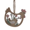 Пасхальный набор из 8 декоративных подвесок «Курица/Петух» станет милым украшением вашего дома к празднику. Фигурки выполнены из дерева и оформлены в спокойной пастельной гамме с традиционными пасхальными мотивами – курочками и петушками . Каждое изделие оснащено прочным джутовым шнурком для подвешивания на ветки, пасхальное дерево, корзины с подарками, дверные ручки или декоративные композиции. Лёгкие, аккуратные и приятные на ощупь подвески создадут тёплую весеннюю атмосферу и подойдут как для дома, так и для оформления витрин, кафе и детских праздников.