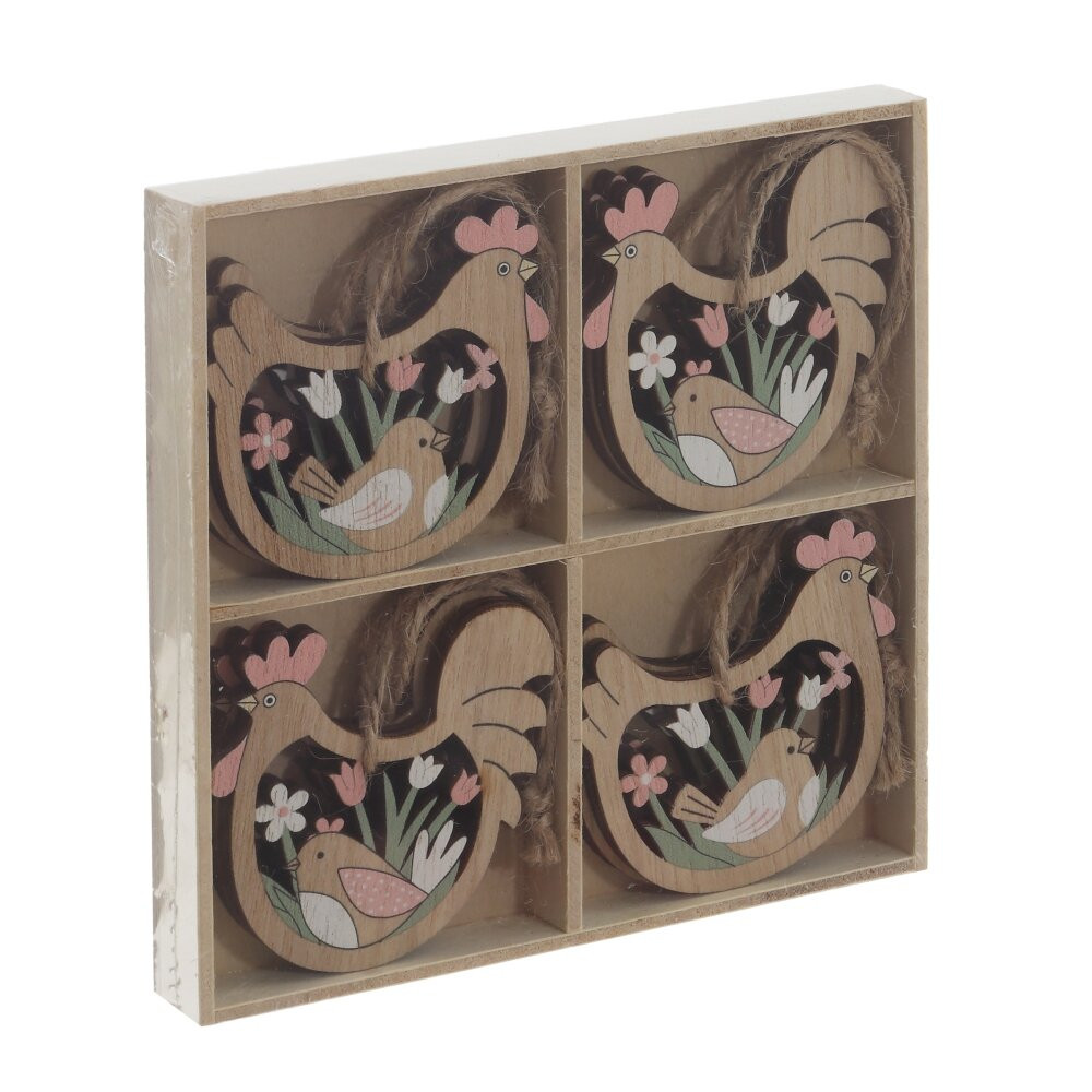 Набор из 8-ми изделий декоративных подвесных "Курица/Петух" (6*05*6), L12,5 W12,5 H1,5 см