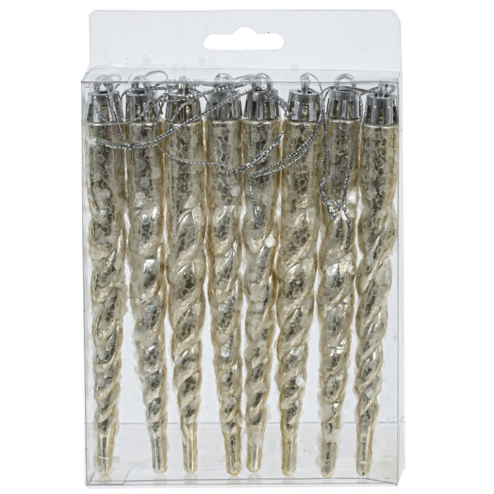 Набор из 8шт Украшение новогоднее "Сосулька", L10 W1,5 H15 см