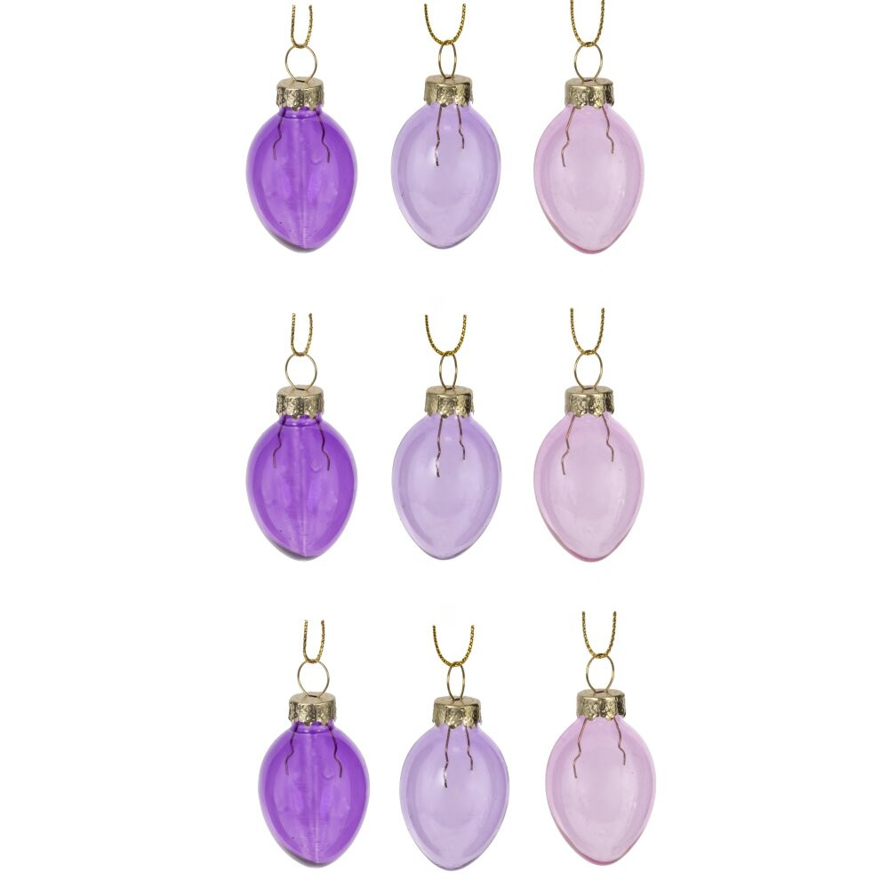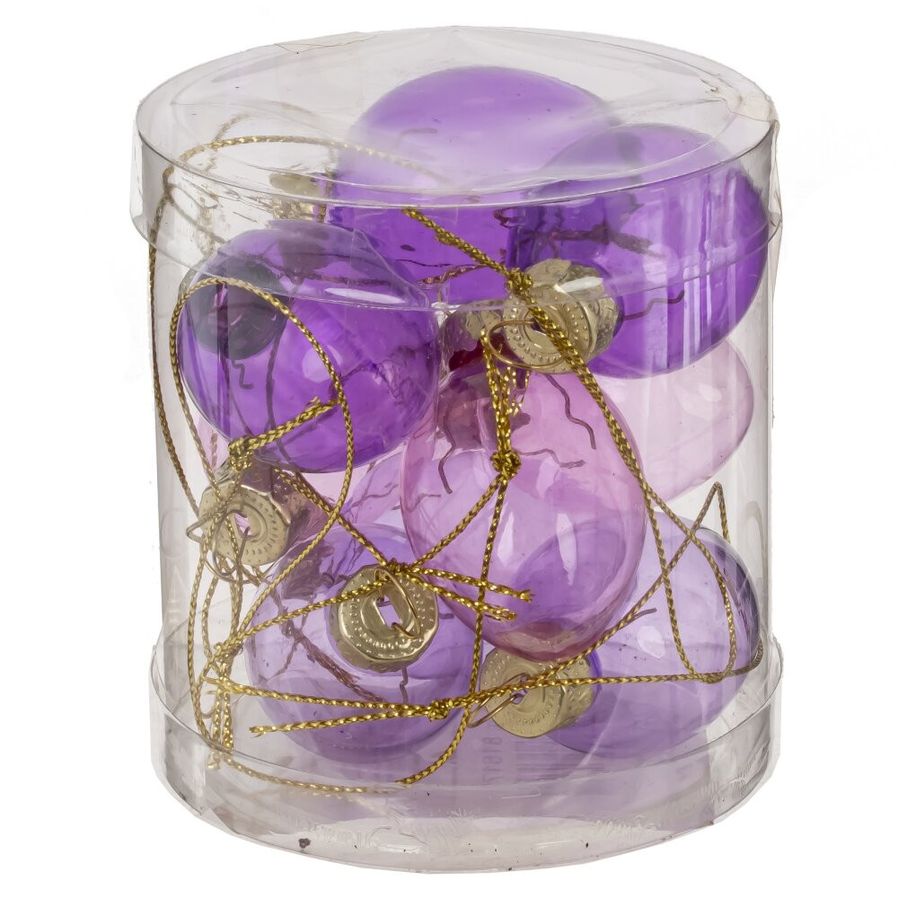 Набор из 9-ти декоративных подвесных изделий «Яйцо пасхальное» — стильное украшение для создания нежной весенней атмосферы в доме. Подвески выполнены из тонкого стекла в пастельной фиолетово?розовой гамме: сочные сиреневые, мягкие лиловые и нежно?розовые яйца гармонично сочетаются между собой и подчёркивают праздничный декор. Каждое яйцо оснащено аккуратной золотистой петелькой-ниточкой для удобного размещения на веточках, пасхальном дереве, композициях, венках, сервировке стола или в подарочных корзинках. Стеклянная поверхность красиво играет на свету, придавая интерьеру лёгкость и изящество. Такой набор станет удачным выбором для оформления пасхального праздника, фотозоны, витрины магазина или в качестве небольшого, но запоминающегося подарка.
