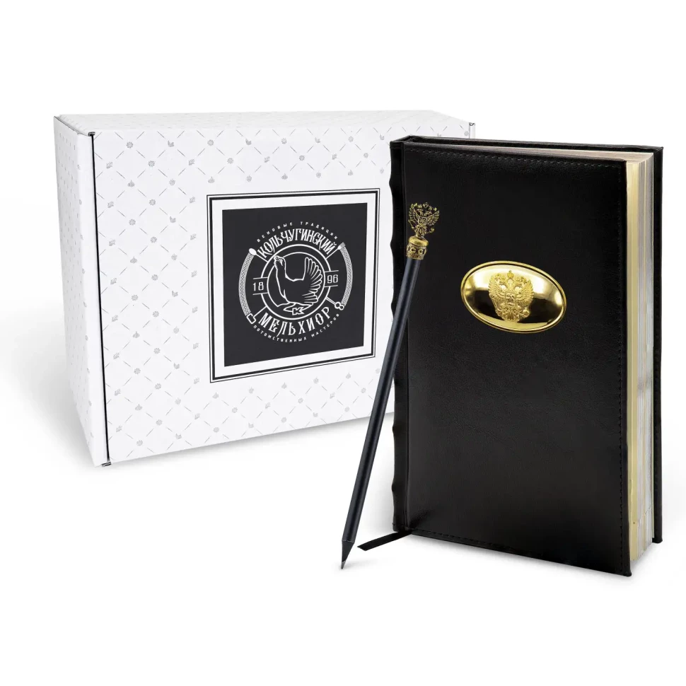 Набор канцелярский (ежедневник+карандаш) "Герб" латунный из экокожи