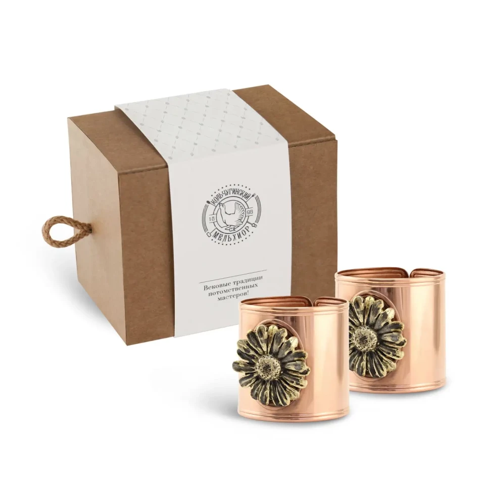 Набор колец д/салфеток "Ромашки" медный с чернением 2 пр.