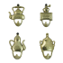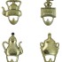 Набор металлических настенных крючков из латуни. В него входит 4 различных крючка в виде чайника для кипячения воды, кофемолки, сахарницы, заварочного чайника. Благодаря своей форме, они отлично впишутся в обстановку кухни. Также могут быть использованы для ключей.