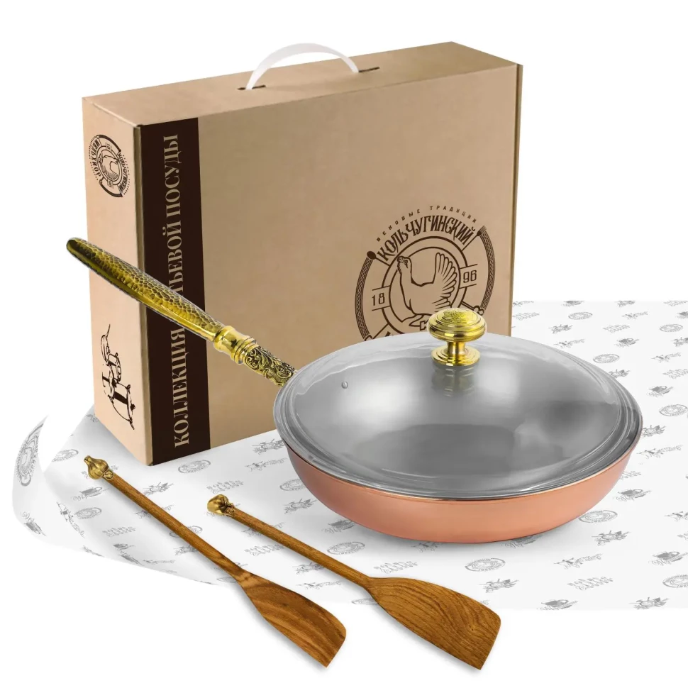 Набор медной посуды "КМ" 3 предмета (сковорода, 2 лопатки)