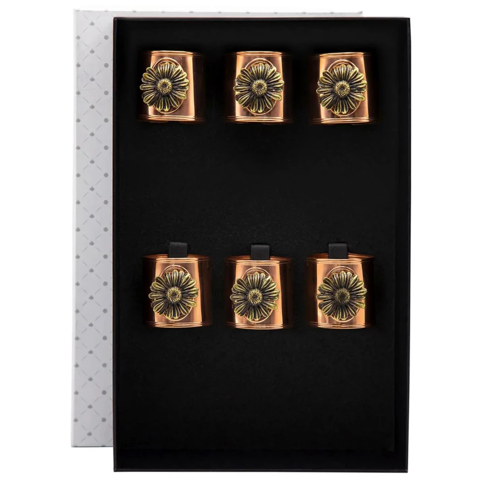 1. Кольцо д/салфеток 'Ромашка' медное арт. КМ689КЦ01 - 6шт. (средний вес 6 х 51 гр. = 306 гр.) Длина: 40 мм. Ширина: 40 мм. Высота: 40 мм. Диаметр: 40 мм.