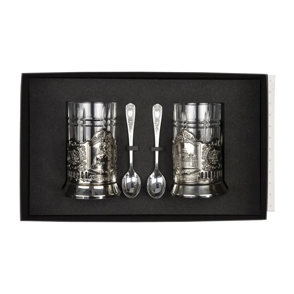 Набор подстаканников "Медный всадник и Исаакиевский собор" никелированный с чернением