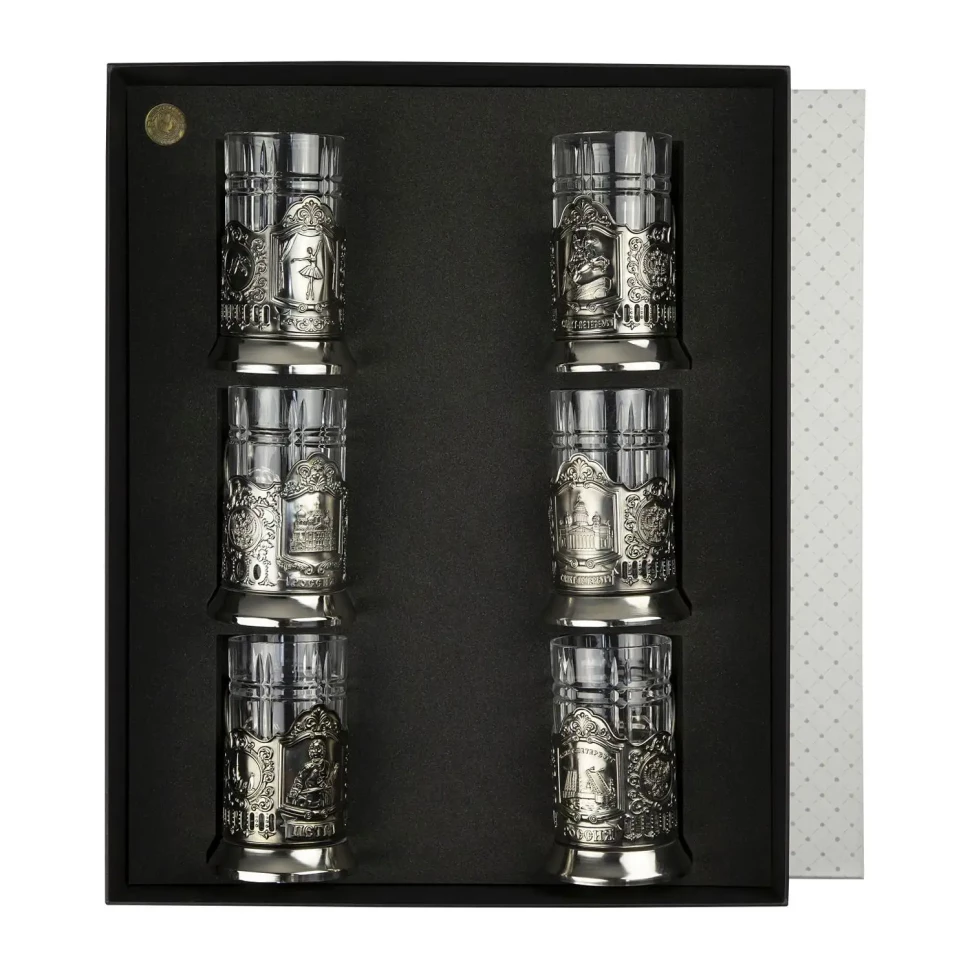 Набор подстаканников "Памятные места Санкт-Петербурга" никелированный с чернением
