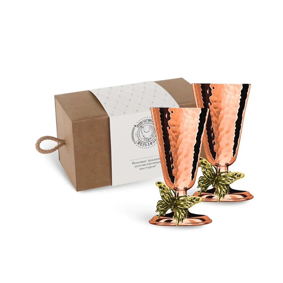 Набор рюмок "№4 Бабочка" медный кованый с чернением