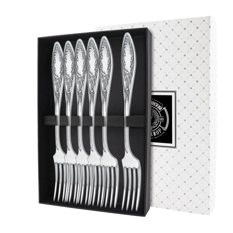 Набор столовой вилки "Пламя" посеребренный с чернением