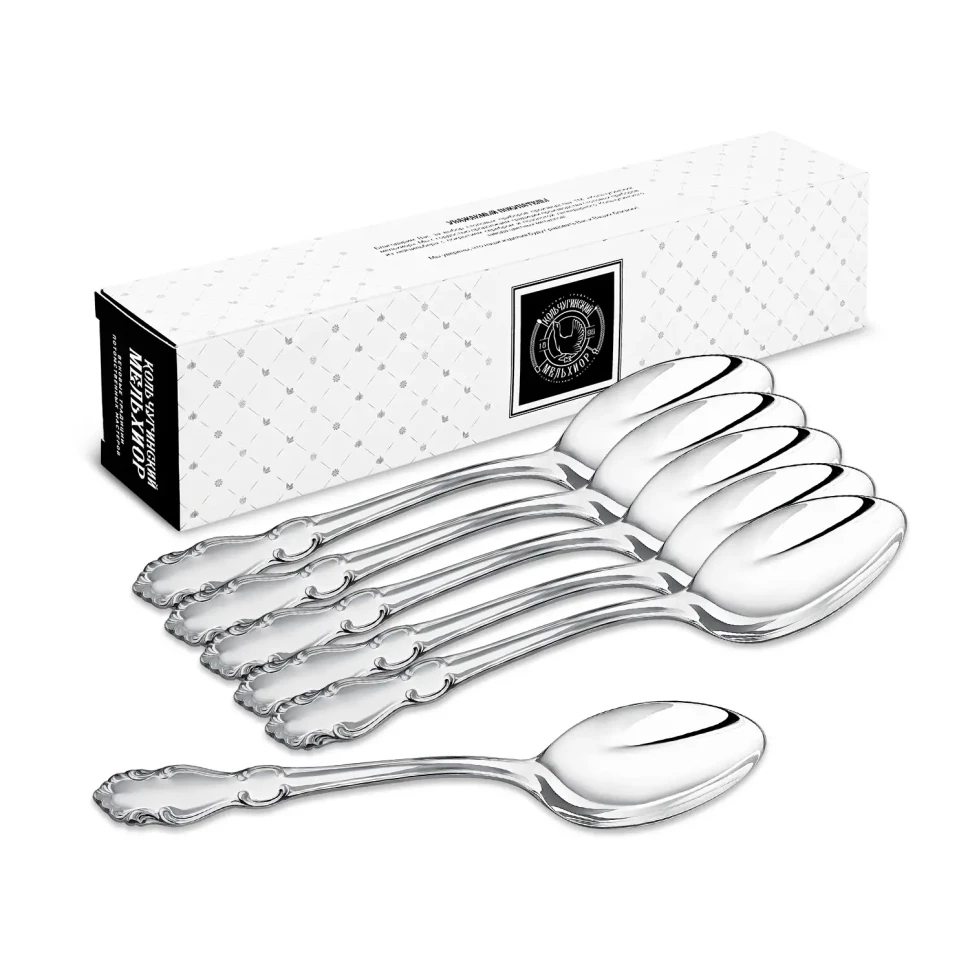 1. Ложка столовая "Лира" посеребренная арт. С310908 - 6шт. (средний вес 6 х 67 гр. = 402 гр.) Длина: 203 мм. Ширина: 43 мм. Высота: 15 мм.