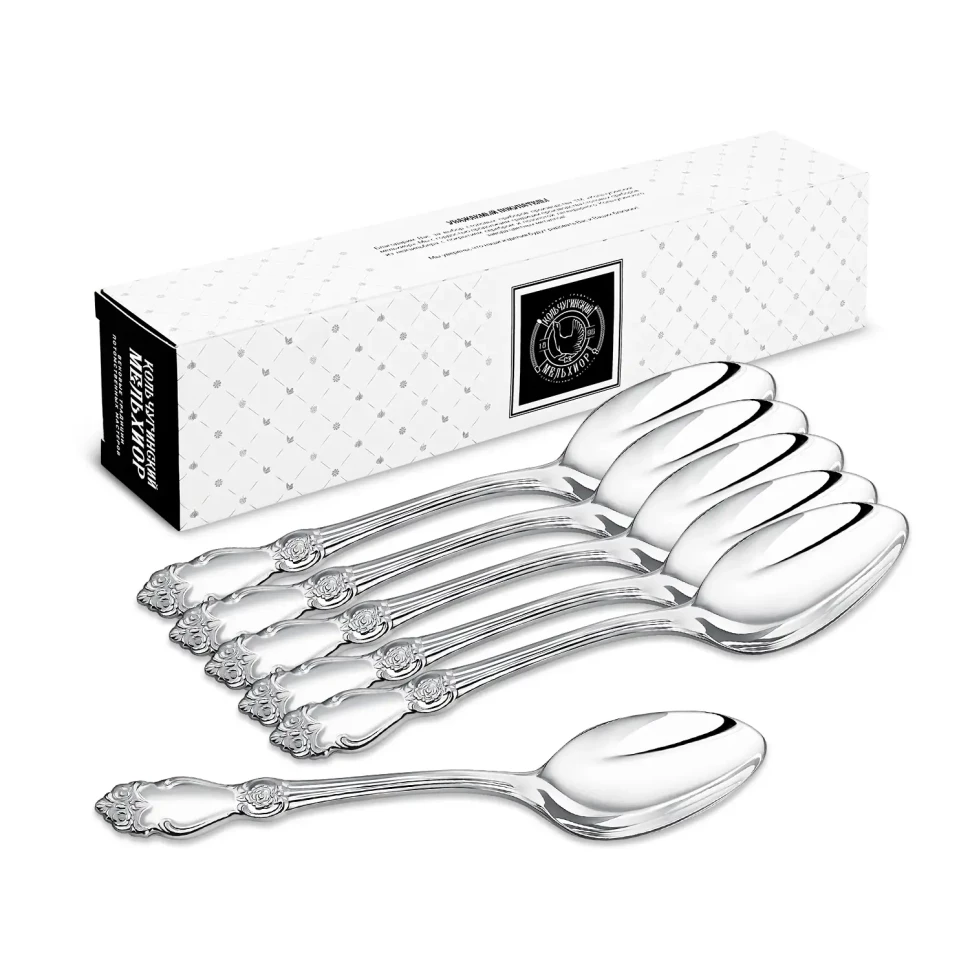 1. Ложка столовая "Серебряная роза" посеребренная арт. С32908 - 6шт. (средний вес 6 х 71 гр. = 426 гр.) Длина: 203 мм. Ширина: 42 мм. Высота: 15 мм.