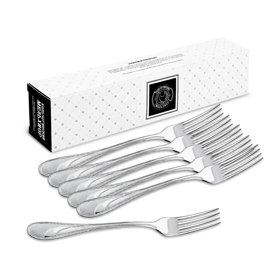 1. Вилка столовая "Метелица" посеребренная арт. С35508 - 6шт. (средний вес 6 х 43 гр. = 258 гр.) Длина: 194 мм. Ширина: 22 мм. Высота: 15 мм.