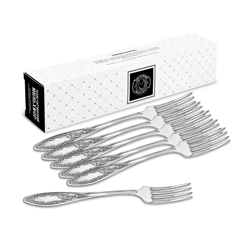 Набор столовых вилок "Пламя" посеребренный с чернением