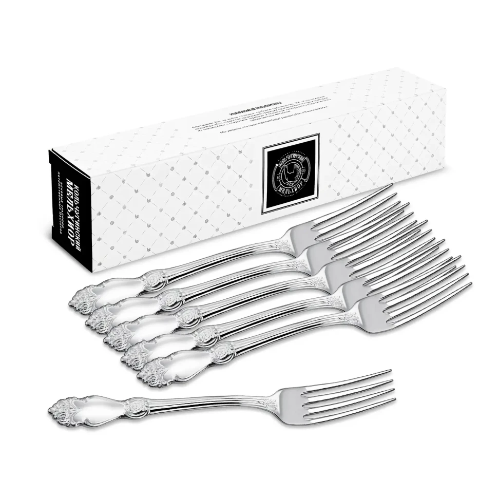 1. Вилка столовая "Серебряная роза" посеребренная арт. С33708 - 6шт. (средний вес 6 х 51 гр. = 306 гр.) Длина: 205 мм. Ширина: 26 мм. Высота: 15 мм.