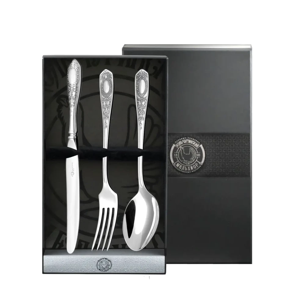 Набор столовый "№1": вилка, ложка, нож посеребренный с чернением