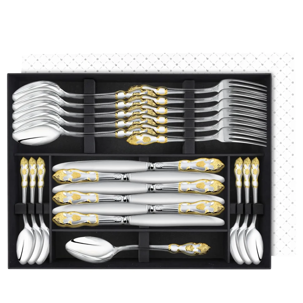 Набор столовый "Герб": вилка, ложка, нож, чайная ложка посеребренный с позолотой