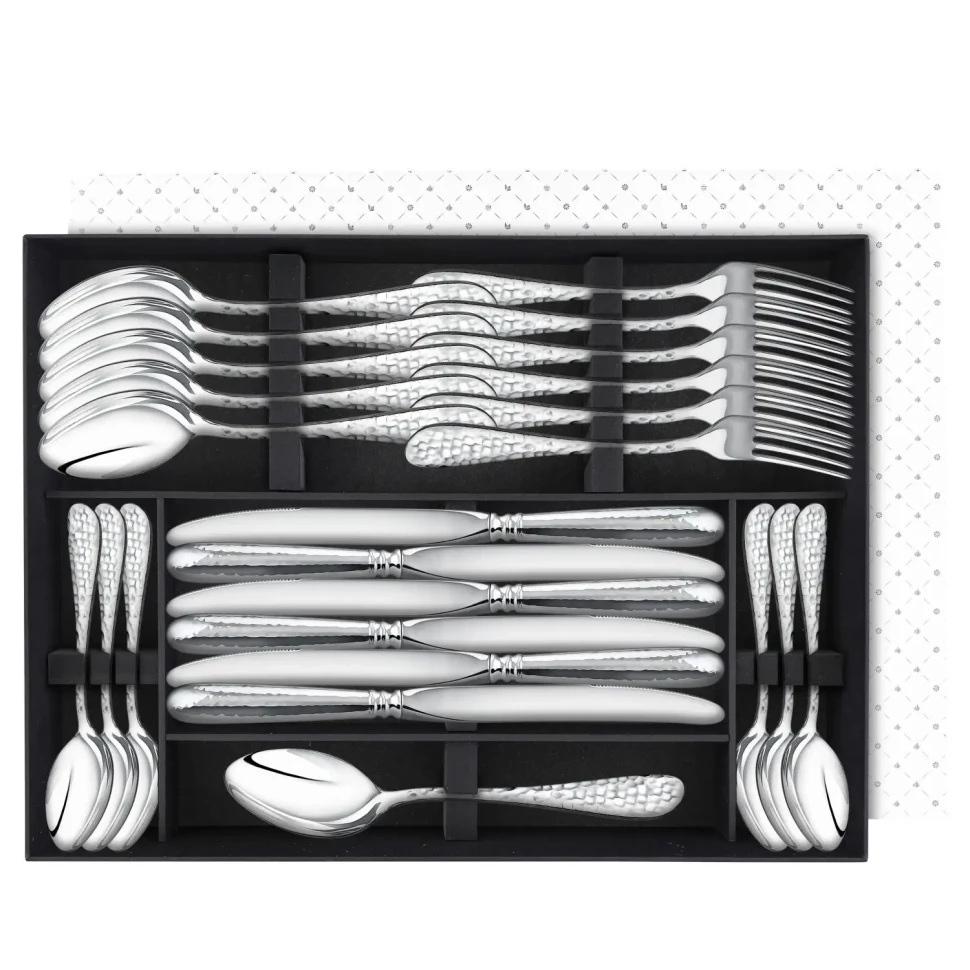 Набор столовый "Капелька" кованная: вилка, ложка, нож, чайная ложка посеребренный