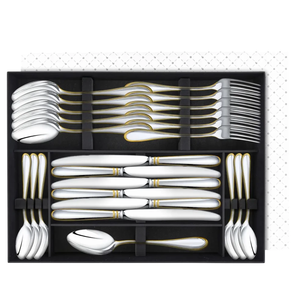 Набор столовый "Капелька": вилка, ложка, нож, чайная ложка посеребренный с позолотой, на 6 персон
