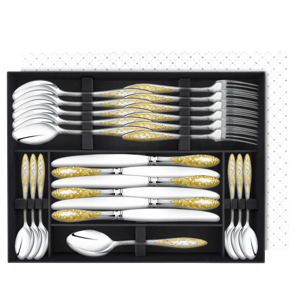 Набор столовый "Морозко": вилка, ложка, нож, чайная ложка посеребренный с позолотой