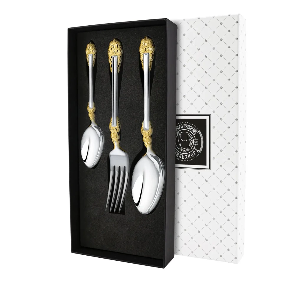 Набор столовый "Праздничный": вилка, ложка, чайная ложка посеребренный с позолотой. Набор на 1 персону.