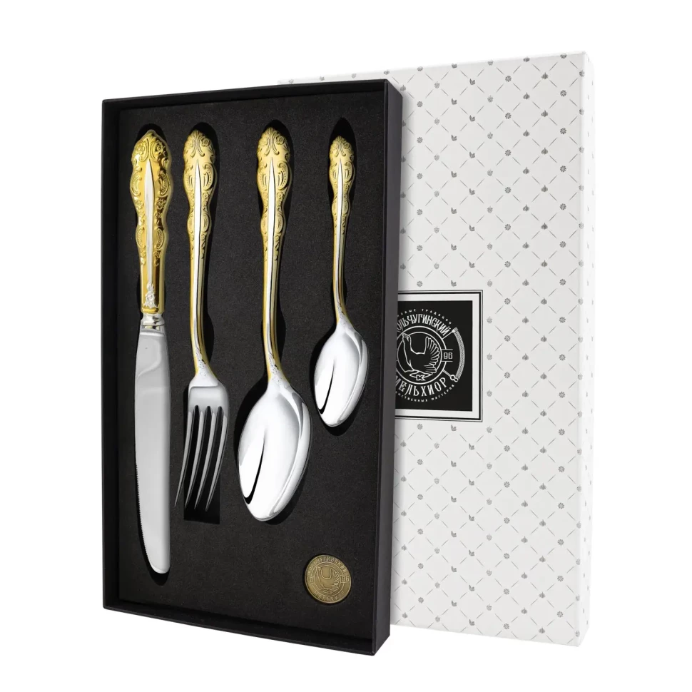 Набор столовый "Юбилейный" посеребренный с позолотой