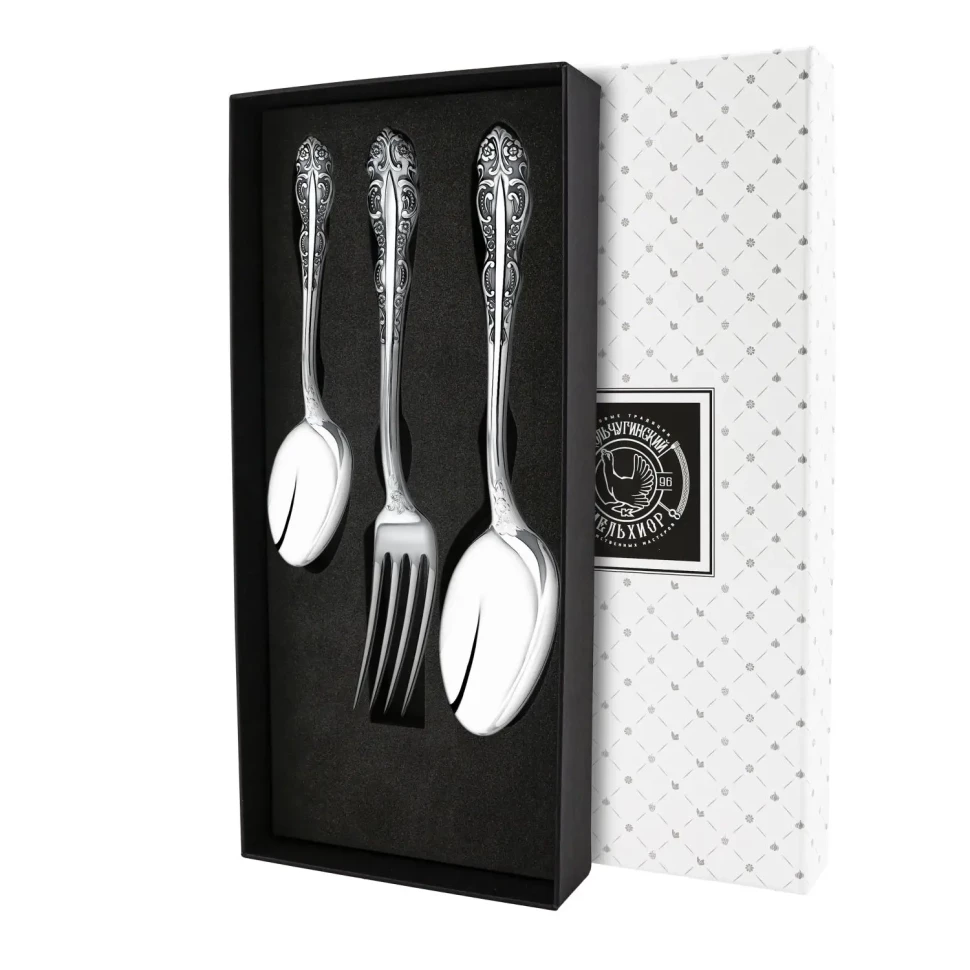 Набор столовый "Юбилейный": вилка, ложка, чайная ложка посеребренный с чернением