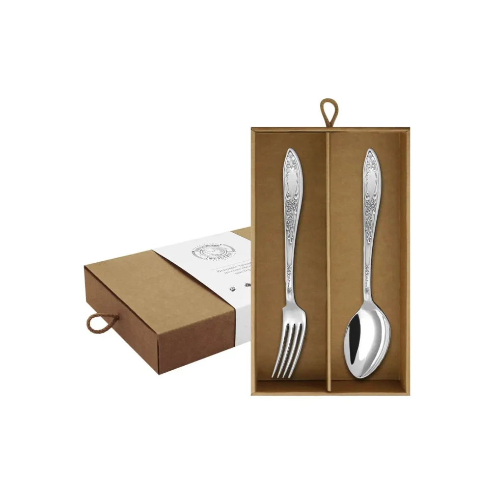 Набор столовый "Жасмин": вилка и ложка посеребренный с чернением